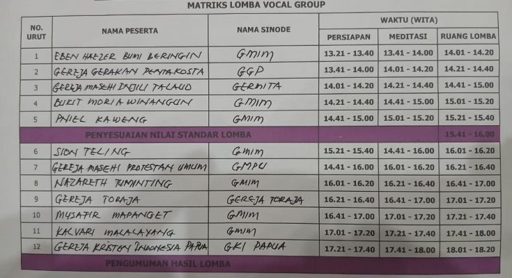 Lomba berlangsung mulai pukul 13.21 hingga 18.20 WITA. Setiap kelompok diberi waktu persiapan, meditasi, hingga tampil di ruang lomba. “Ini bukan hanya soal kompetisi, tapi tentang bagaimana umat bisa bersatu dalam nyanyian pujian,” ujar salah satu panitia.
