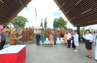 Dilanjutkan dengan penyerahan bibit cabe oleh Bupati Michael Thungari kepada Ketua Kelompok Tani Berkat.(jl)