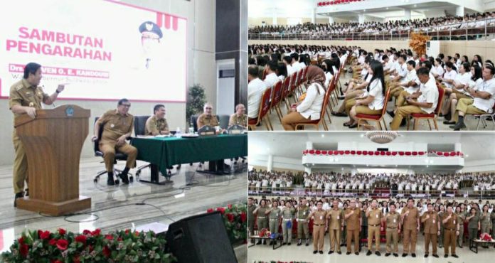 Sulut, identitasnews.id – Wakil Gubernur Sulawesi Utara, Drs Steven Kandouw memberikan pengarahan kepada pegawai Non ASN/THL (Tenaga Harian Lepas) di lingkungan Pemerintah Provinsi Sulut, bertempat di Gedung Mapalus Kantor Gubernur, Selasa (09/01/2024).