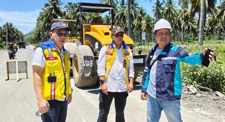 Peninjauan lokasi perbaikan jalan ini dipimpin langsung oleh Kepala BPJN Sulut Handiyana didampingi Pejabat Pembuat Komitmen (PPK) 2.3 Satuan Kerja Wilayah II Sulut Renly Sembiring beserta jajaran. Bertempat diruas jalan Trans Sulawesi Desa Binjeita, Kecamatan Bolangitang Timur, Kabupaten Bolaang Mongondow Utara (Bolmut) Selasa, (24/02/26).
