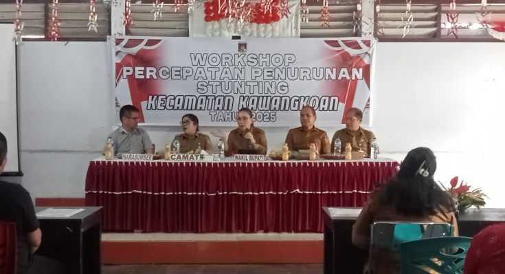 KAWANGKOAN, identitasnews.id – Wakil Bupati (Wabup) Minahasa Vanda Sarundajang, membuka workshop percepatan penurunan stunting di kecamatan Kawangkoan, Selasa (26/8/2025).
