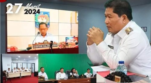 TONDANO, identitasnews.id – Penjabat Bupati Minahasa Dr. Jemmy Stani Kumendong, M.Si, Bersama Sekretaris Daerah (Sekda) Kabupaten Minahasa Dr. Lynda D. Watania MM, M.Si, Mengikuti Rapat Koordinasi (Rakor) Terkait isu-isu Strategis Pelaksanaan Pemilihan Kepala Daerah (Pilkada) dan Tata Kelola Penyelenggaraan Pemerintahan Daerah Bertempat di Ruang Comand Center Via Zoom Meeting, Rabu (27/3/2024).