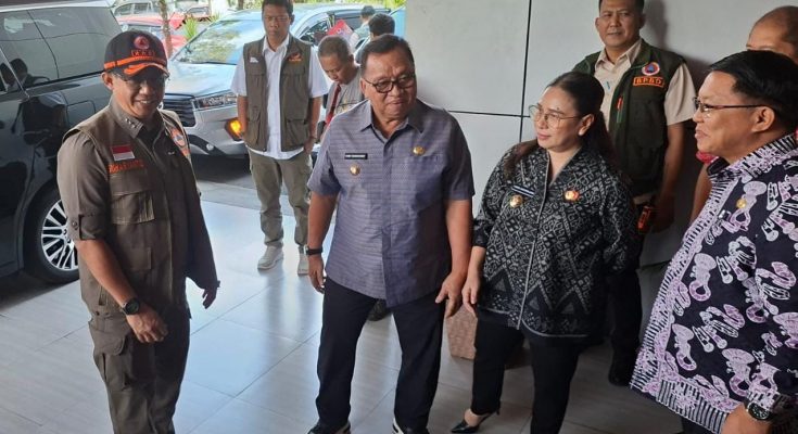 TONDANO, identitasnews.id – Bupati Minahasa, Robby Dondokambey SSi MAP dan Wakil Bupati Vanda Sarundajang SS (RD-Vasung), Sekretaris Daerah Dr Lynda Watania MM MSi, serta jajaran menyambut kunjungan kerja (Kunker) Kepala Badan Nasional Penanggulangan Bencana (BNPB) Republik Indonesia, Letjen TNI Dr Suharyanto SSos MM, Kamis (12/6/2025).