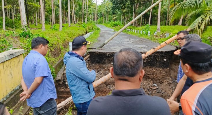 Selanjutnya Bupati dan Wakil Bupati bersama rombongan serta Kapolres Kepulauan Sangihe meninjau beberapa titik lokasi longsor. Dimulai dari jembatan TPA Santiago yang putus, Kolongan Mitung, Kendahe, Mahena dan Lenganeng.