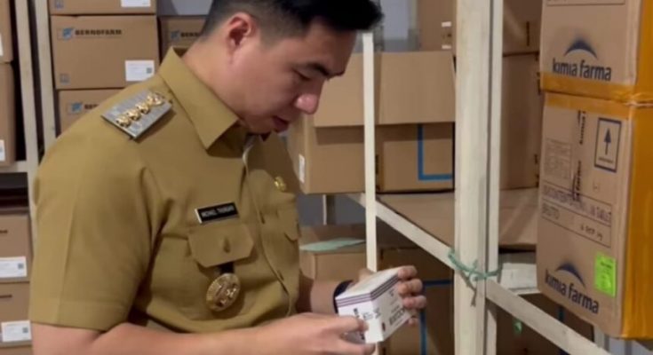 Pada kesempatan tersebut, Bupati meninjau langsung sistem penyimpanan obat, pencatatan hingga distribusi obat di Gudang Farmasi Dinas Kesehatan Daerah serta mengevaluasi kesiapan pelayanan kesehatan kepada masyarakat.