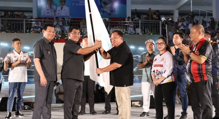 TONDANO, identitasnews.id – Bupati Minahasa Robby Dondokambey, SSi, MAP, didampingi Ketua TP-PKK Kabupaten Minahasa Ny. Martina W. Dondokambey-Lengkong, SE, bersama Wakil Bupati Minahasa Vanda Sarundajang, SS, serta Ketua DPRD Kabupaten Minahasa yang juga Ketua KONI Minahasa Drs. Robby Longkutoy MM, menghadiri Closing Ceremony Pekan Olahraga Provinsi (PORPROV) ke-XII Sulawesi Utara Tahun 2025 di Stadion Klabat Manado, Senin (24/11/2025).