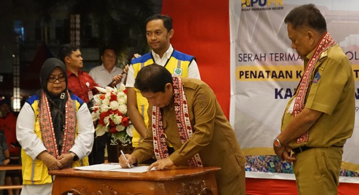 Sebelumnya Kepala Balai Prasarana Permukiman Wilayah Sulut Ir Nurdiana Habibie M.Si, membawakan sambutan atas nama Kementerian PUPR RI.