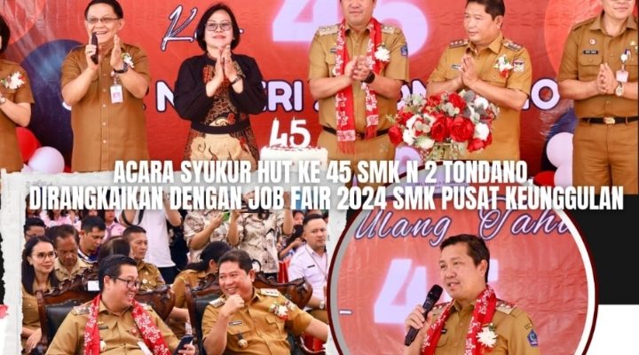 Wagub Kandouw mengatakan HUT ke 45 SMK Negeri 2 Tondano yang dirangkai dengan Job Fair Pusat Keunggulan merupakan bukti bahwa sekolah ini terus mengalami proses perubahan yang baik guna meningkatkan kualitas pendidikan baik anak didik maupun guru.