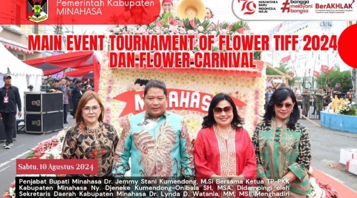 TONDANO, identitasnews.id – Penjabat Bupati Minahasa Dr. Jemmy Stani Kumendong, M.Si bersama Ketua TP-PKK Kabupaten Minahasa Ny. Djeneke Kumendong-Onibala SH, MSA, didampingi oleh Sekretaris Daerah (Sekda) Kabupaten Minahasa Dr. Lynda D. Watania, MM, MSi, menghadiri acara ‘Main Event Tournament Of Flower TIFF 2024 dan Flower Carnival’ Yang dibuka Mewakili Menteri Pariwisata Ekonomi Kreatif, Sekretaris Kemenparekraf/Sekretaris Utama Baparekraf; Ibu Ni Wayan Giri Adnyani.