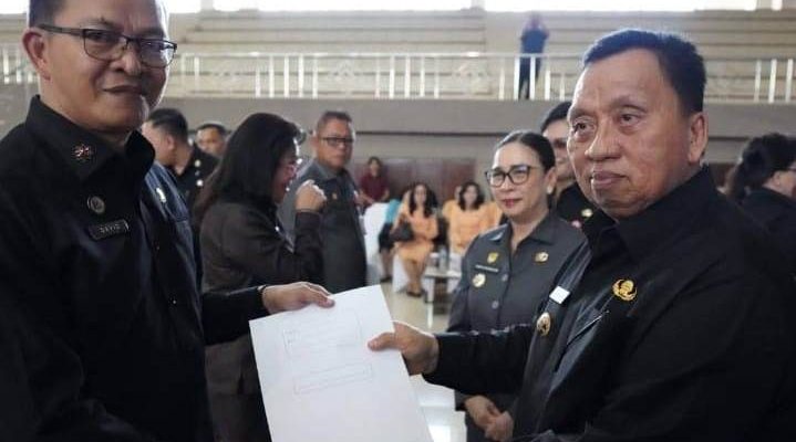 TONDANO, identitasnews.id – David Mangundap SE dilantik oleh Bupati Minahasa Robby Dondokambey S.Si MAP (kandidat Doktor), sebagai Kepala Badan Keuangan dan Aset Daerah Kabupaten Minahasa, mengantikan pejabat lama Gantikan Joice Pua SE, yang dalam jabatannya baru sebagai Staf Ahli Bupati, Senin (26/1/2026) bertempat di Wale Ne Tou Minahasa Tondano.