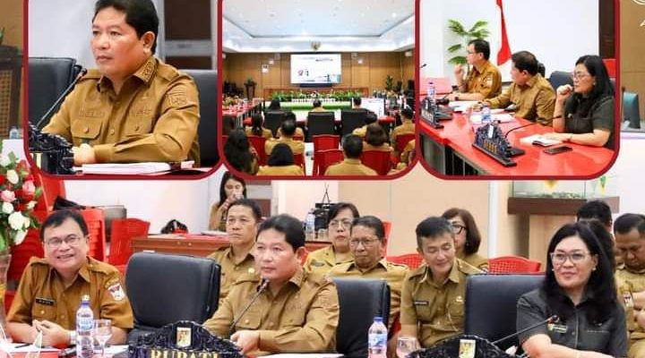 TONDANO, identitasnews.id – Penjabat Bupati Minahasa Dr Jemmy S Kumendong M.Si didampingi Sekretaris Daerah Dr Lynda Watania MM, bersama para asisten dan Penjabat lingkup pemkab Minahasa mengikuti asistensi laporan evaluasi kinerja Penjabat Bupati oleh Tim Kemendagri secara Zoom Meeting, Selasa (16/4/2024), di ruang sidang Bupati Minahasa.