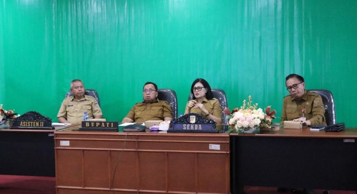 TONDANO , identitasnews.id — Bupati Minahasa, Robby Dondokambey, S.Si, MAP, bersama Sekretaris Daerah Kabupaten Minahasa, Dr. Lynda D. Watania, MM, M.Si, mengikuti Rapat Koordinasi Pengendalian Inflasi Daerah yang dirangkaikan dengan pembahasan Evaluasi Dukungan Pemerintah Daerah dalam Program Nasional 3 Juta Rumah, Selasa (29/7/2025).