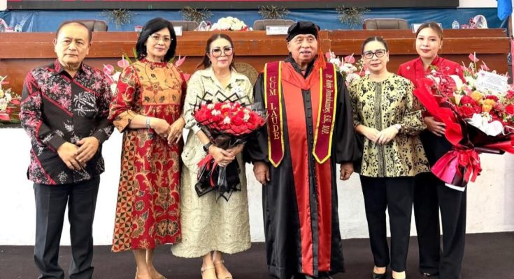Orang nomor satu di Kabupaten Minahasa itu resmi menyandang gelar Doktor usai menjalani Ujian Promosi Doktor Program Studi Manajemen Pendidikan (S3) dengan predikat Cum Laude, yang digelar di Gedung Training Center Universitas Negeri Manado (UNIMA) Tondano, Jumat (13/2/2026).