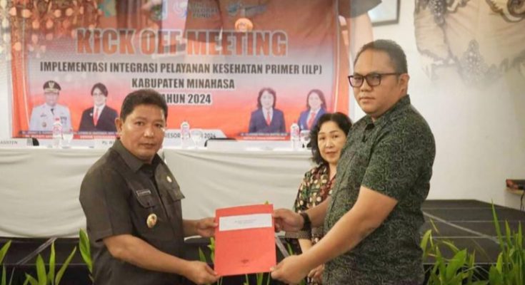 TONDANO, identitasnews.id – Penjabat Bupati Minahasa Dr. Jemmy Stani Kumendong, M.SI didampingi Kepala Dinas Kesehatan Kabupaten Minahasa dr Olviane Rattu M.Kes menghadiri sekaligus membuka kegiatan Kick Off Meeting Implementasi Integrasi Pelayanan Kesehatan Primer Kabupaten Minahasa Tahun 2024 yang dilanjutkan dengan penyerahan SK Piloting Project Penerapan ILP dan Penandatanganan Komitmen bersama Pemerintah Daerah dan Seluruh Lintas Sektor, Lintas Program Terkait Penerapan ILP di Kabupaten Minahasa, Bertempat di Hotel Yama Resort Tondano, Jumat (21/6/2024).