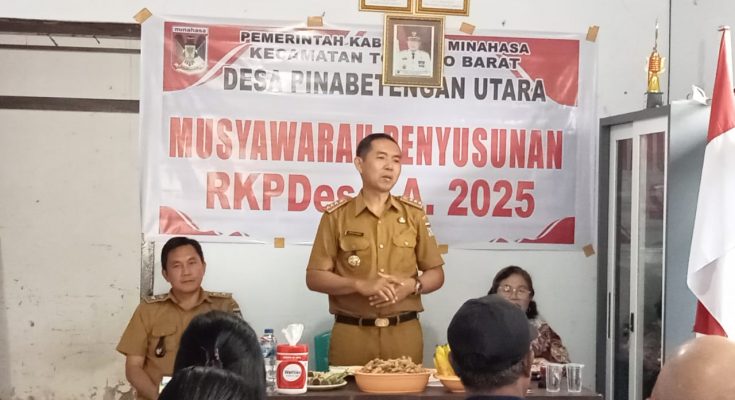 TOMPASO, identitasnews.id – Pemerintah desa Pinabetengan Utara mengelar Musyawarah Penyusunan Rencana Kerja Pembangunan Desa (RKPDes) Desa Pinabetengan Utara tahun 2025, hari ini Selasa (16/6/2024). Musyawarah digelar di Kantor Hukum Tua, dihadiri Camat Tompaso Barat Stevry Pandey ST MAP.