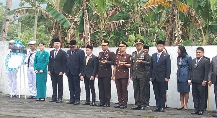 Hadir dalam ziarah ke Taman Makam Pahlawan (TMP) dan Makam Pahlawan Nasional Bataha Santiago antara lain, Bupati Kepulauan Sangihe Michael Thungari, SE., MM didampingi Ketua TP-PKK Ny. Cherry S. Thungari Soeyoenus, SE, Wakil Bupati Tendris Bulahari, Danlanal Kolonel Laut (P) Hadi Subandi, M.Tr. Hanla, CRMP, Dandim 1301/Sangihe Letkol CZI Nazarudin, ST., M.IP. Kapolres Kepulauan Sangihe AKBP Abdul Kholik, SH., S.IK, M.AP, Kajari Kepulauan Sangihe I Bagus Putra Agung, SH., MH, Ketua Pengadilan Negeri Tahuna Sigit Triatmojo, SH., MH, Wakil Ketua DPRD Kabupaten Kepulauan Sangihe Marvein Hontong, SH dan jajaran Pemkab Kepulauan Sangihe.(jl)
