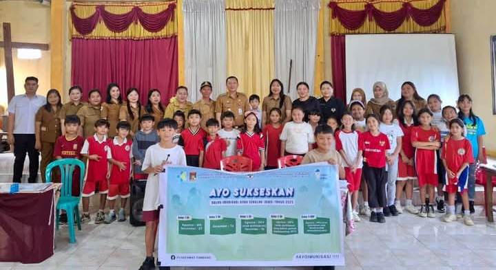 TOMPASO, identitasnews.id – Camat Tompaso Stenly D Umboh SSTP MAP, mencanangkan Program Nasional Bulan Imunisasi Anak Sekolah (BIAS) dan Pemeriksaan Kesehatan Gratis dari Puskesmas Tompaso di SD Katolik Santu Agustinus Tompaso, Selasa (5/8/2025).