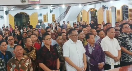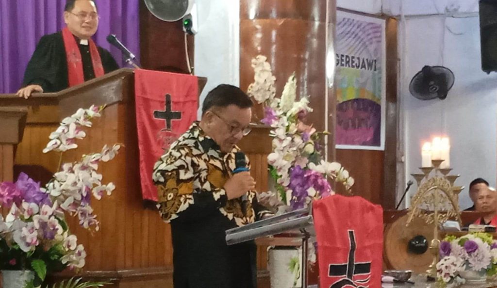 Manado, identitasnews.id – Bersama isteri tercinta ibu dr. Merry Mawardi,S.pA, Wakil Wali Kota Manado, dr. Richard Sualang, menghadiri pelantikan Panitia Pelaksana Hari Persatuan (HAPSA) Pria/Kaum Bapa (PKB) Sinode GMIM Tahun 2026, yang digelar dalam rangkaian ibadah Minggu Sengsara Ketiga di GMIM Betel Teling Atas, Manado, Minggu (8/3/2026).