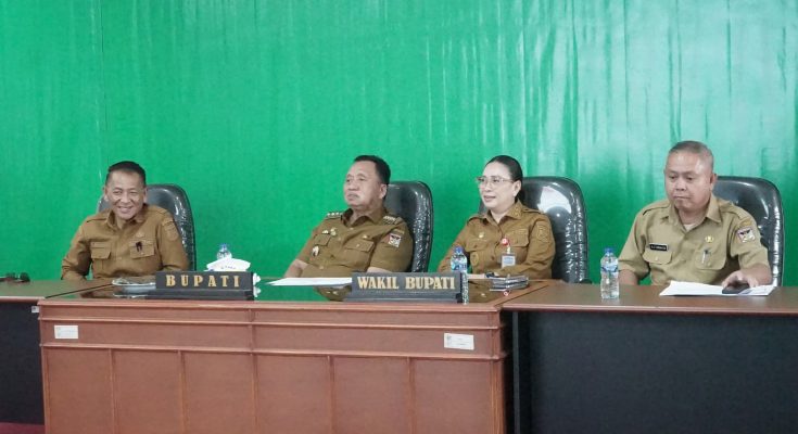 TONDANO, identitasnews.id – Bupati Minahasa Robby Dondokambey, SSi, MAP, bersama Wakil Bupati Minahasa Vanda Sarundajang, SS. mengikuti Rapat Koordinasi Pembahasan Langkah Konkret Pengendalian Inflasi yang dirangkaikan dengan Evaluasi Dukungan Pemerintah Daerah dalam Program 3 Juta Rumah.