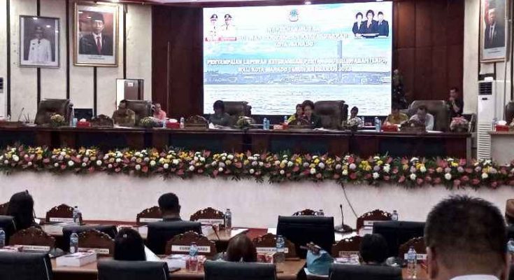 MANADO, identitasnews.id – Dewan Perwakilan Rakyat Daerah (DPRD) Kota Manado melaksanakan Rapat Paripurna mendengarkan penyampaian laporan keterangan pertanggungjawaban (LKPJ) Wali Kota Manado Tahun Anggaran 2023, Selasa (26/3/2024).