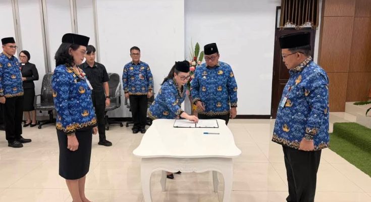 TONDANO, identitasnews.id — Bupati Minahasa Robby Dondokambey bersama Wakil Bupati Vanda Sarundajang menghadiri pengukuhan Dewan Pengurus Korps Pegawai Republik Indonesia (KORPRI) Kabupaten Minahasa periode 2026–2031. Kegiatan tersebut berlangsung di ruang sidang Kantor Bupati Minahasa, Jumat (17/4/2026).