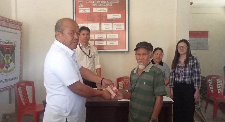 KAWANGKOAN, identitasnews.id – Hukum Tua Kanonang Empat Kecamatan Kawangkoan Barat Djenly W E Kasenda, menyalurkan bantuan langsung tunai (BLT) kepada 29 Keluarga Penerima Manfaat (KPM), Rabu (11/10/2023) di kantor Hukum Tua.