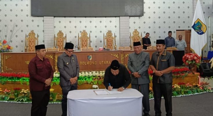 Rapat paripurna ini diakhiri dengan penandatanganan berita acara oleh pimpinan DPRD Bolmut, yaitu Ketua DPRD Frangky Chendra, Wakil Ketua Depri Pontoh, dan Saiful Ambarak. Penandatanganan tersebut turut disaksikan oleh Penjabat Bupati Bolmut, Darwin Muksin dan Penjabat Sekretaris Daerah Bolmut, Abdul Nazarudin Maloho.