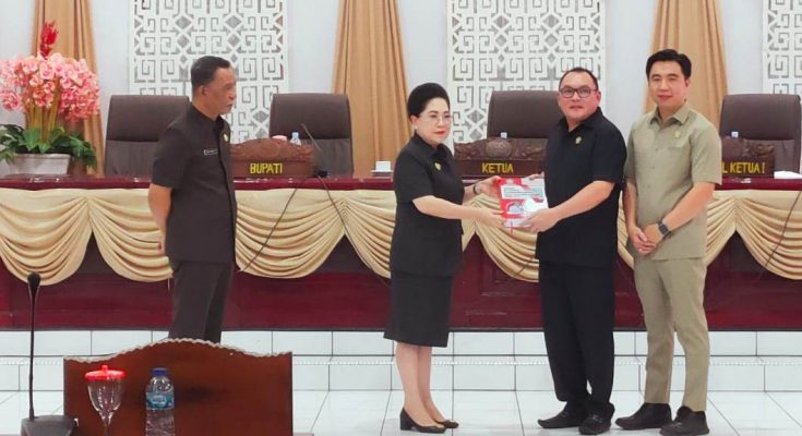 Penjabat Bupati dr. Rinny Tamuntuan dalam sambutannya menyampaikan penghargaan yang tulus dan terima kasih kepada Pimpinan dan Anggota Dewan, sekalipun ditengah kesibukan masih sempat mengagendakan acara yang sangat penting dan strategis dalam rangka mewujudkan penyelenggaraan pemerintahan sesuai amanat Undang-undang Nomor 23 Tahun 2014 tentang Pemerintahan Daerah.