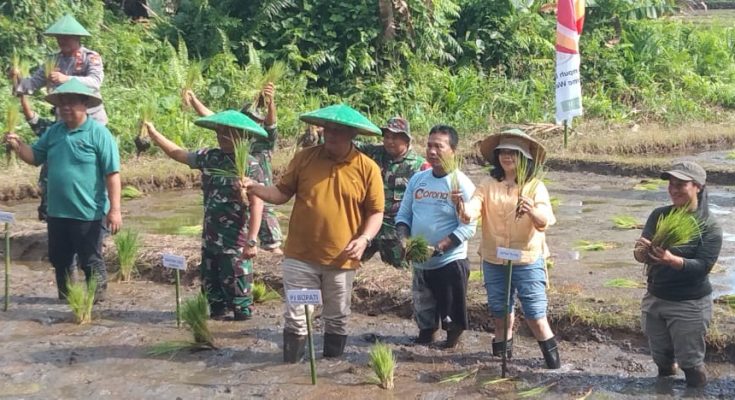 SANGIHE.Identitasnews.id – Dalam rangka mendukung Program Ketahanan Pangan Nasional, Pemerintah Daerah (Pemda) Kabupaten Kepulauan Sangihe bekerjasama dengan Tentara Nasional Indonesia (TNI) dan Kelompok Tani di Kampung Kuma 1 Kecamatan Tabukan Tengah melaksanakan penanaman padi di lahan seluas 2 hektar, Sabtu (20/07/2024).
