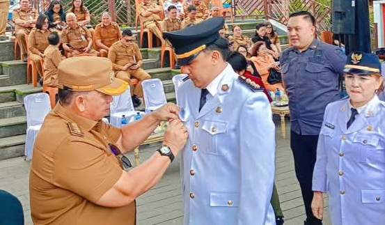 Evertson Rantung, dilantik bersama dengan ratusan pejabat di lingkungan pemkab Minahasa, di taman Godbless Tondano.