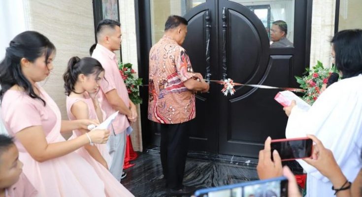 Sulut, identitasnews.id – Rumah keluarga Kandoli-Antou akhirnya ditahbiskan dan dalam ibadah syukur yang dilaksanakan di Kelurahan Nataan, Kecamatan Ratahan, Kabupaten Minahasa Tenggara (Mitra), Minggu (12/11/2023).
