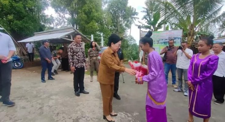 SANGIHE.Identitasnews.id – Kedatangan Penjabat Bupati Kepulauan Sangihe dr. Rinny Tamuntuan di Kampung Mandoi Kecamatan Tabukan Selatan dalam rangkaian untuk menghadiri ibadah syukur Hari Ulang Tahun (HUT) ke 92 GMIST Jemaat Hermon dan HUT Kampung Mandoi ke 57 di sambut secara adat, Senin (18/03/2024).