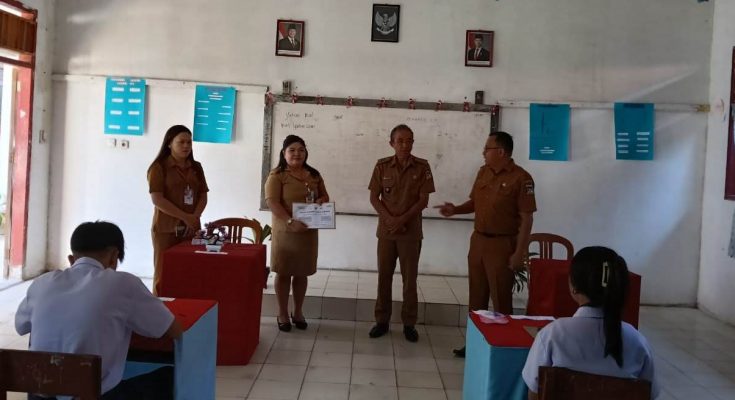 KAWANGKOAN, identitasnews.id – Hukum Tua Desa Ranolambot Kecamatan Kawangkoan Barat Reky Ruru SH, membuka naskah Ujian Sumatif Akhir Jenjang (USAJ) di SD GMIM Ranolambot dan SMP Negeri Satu Atap Ranolambot, Senin (5/5/2025).