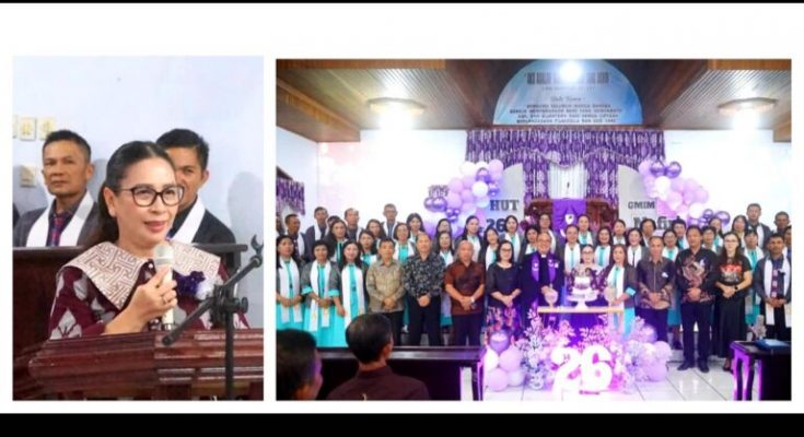 Wabup Vanda Sarundajang menyampaikan pentingnya merefleksikan kasih Tuhan dan memperkuat komitmen pelayanan, seiring dengan pertumbuhan iman dan kebersamaan jemaat selama 26 tahun.