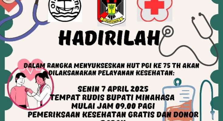 TONDANO, identitasnews id – Dalam rangka memperingati Hari Ulang Tahun ke-75 Persekutuan Gereja-gereja di Indonesia (PGI), digelar kegiatan pelayanan kesehatan bagi masyarakat, yang berlangsung pada Senin, 7 April 2025. Kegiatan ini bertempat di Rumah Dinas Bupati Minahasa dan dimulai pukul 09.00 WITA.