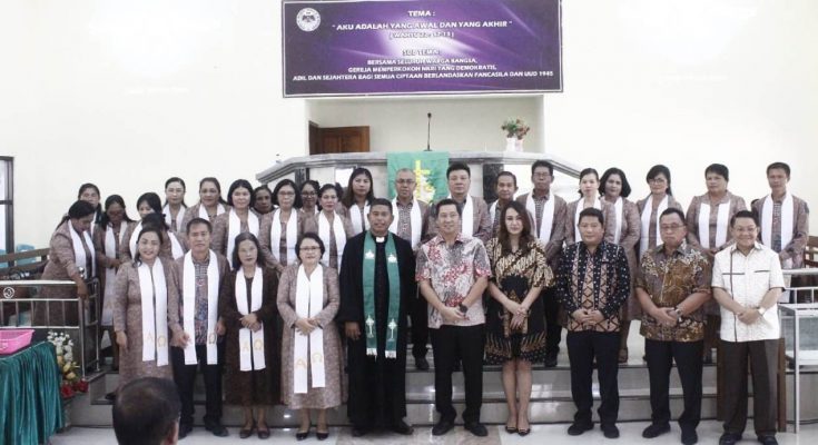 “Gereja harus terus bertransformasi, deng torang pe iman harus terus bertranformasi apapun profesi kita, harus seiring sejalan dengan pemerintah, harus pararel dengan pemerintah, dan selalu menyuarakan tentang kerukunan”, tandasnya.