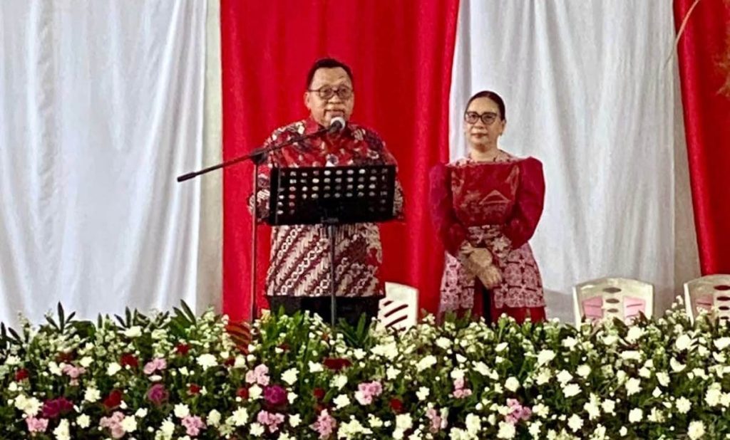 Turut hadir Forkopimda Kabupaten Minahasa, Ketua DPRD Minahasa Drs Robby Longkutoy, Para Kepala SKPD, Anggota DPRD Minahasa, Para ASN, Tokoh Agama, dan Lainnya. (advertorial/rom)