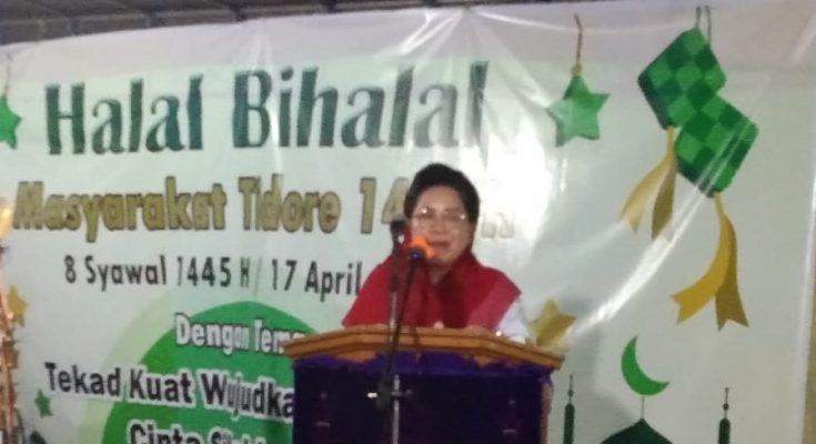 Penjabat Bupati dr. Rinny Tamuntuan dalam sambutannya mengucapkan selamat merayakan Lebaran Ketupat 1445 H kepada kaum muslimin wal muslimat di Daerah Kabupaten Kepulauan Sangihe pada umumnya dan terlebih khusus kepada pemerintah dan masyarakat Kelurahan Tidore.