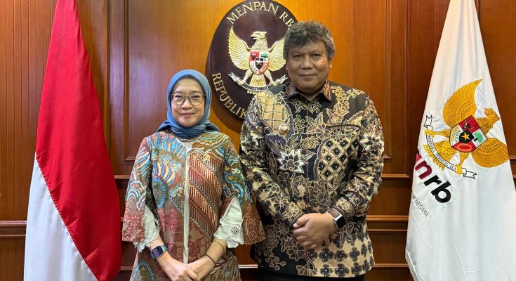 SANGIHE.Identitasnews.id – Menjelang akhir masa tugasnya sebagai Penjabat Bupati di Kabupaten Kepulauan Sangihe, Albert Huppy Wounde menemui Menteri Pendayagunaan Aparatur Negara dan Reformasi Birokrasi (PANRB) Rini Widyantini dalam rangka menata birokrasi dan menyelesaikan isu Tenaga Honorer Lepas (THL) di lingkup Pemerintah Kabupaten (Pemkab) Kepulauan Sangihe, Kamis (16/01/2025).