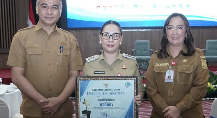 Pada kesempatan itu, Kabupaten Minahasa menerima Piagam Penghargaan Terbaik V Penurunan Stunting Tahun 2025, kategori Kinerja Pelaksanaan 8 Aksi Konvergensi Penurunan Stunting Tahun 2024 di Provinsi Sulawesi Utara.