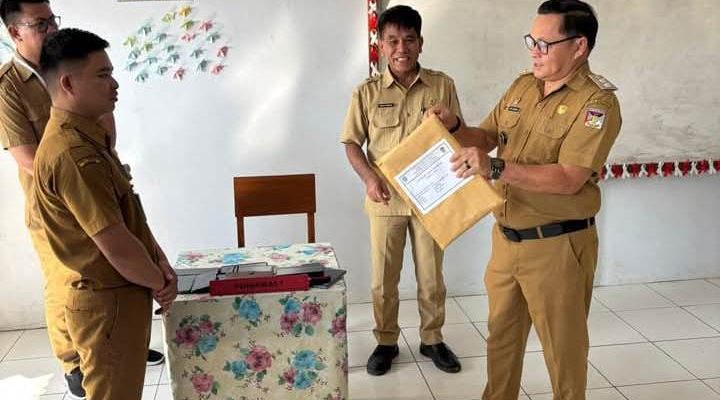 membuka sampul soal Ujian Akhir Sekolah (UAS) Kelas XII di SMA Negeri 1 Kawangkoan Barat di Kanonang Satu, Senin (14/04/2025).