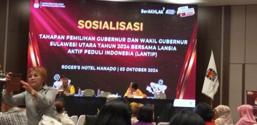 Kamis (03/10/2024) bertempat di Roger’s hotel Komisi Pemilihan Umum menggelar kegiatan Sosialisasi Tahapan Pemilihan Gubernur dan Wakil Gubernur Sulawesi Utara tahun 2024 bersama Lansia Aktif Peduli Indonesia (Lantip).