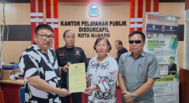 Penyerahan putusan pengadilan tersebut diserahkan langsung oleh Kepala Dinas Kependudukan dan Pencatatan Sipil Kota Manado, Erwin Kontu, didampingi Ketua POSBAKUM Sulawesi Utara, E. K. Tindangen. Penyerahan ini menjadi bukti nyata kolaborasi lintas sektor antara Disdukcapil, Pengadilan Negeri Manado, dan POSBAKUM Sulut dalam menghadirkan pelayanan yang berpihak kepada masyarakat.