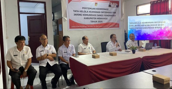 TONDANO, identitasnews.id – Dinas Komunikasi dan Informatika Kabupaten Minahasa menggelar kegiatan Koordinasi Tata Kelola Keamanan Informasi dan Jaringan Komunikasi Sandi di Lingkungan Pemerintah Daerah tahun 2025, Rabu 19/11/2025 berempat di Kantor Dinas Kominfo