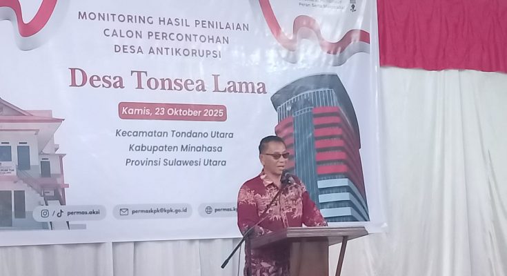 TONDANO, identitasnews.id – Komisi Pemberantasan Korupsi (KPK) Republik Indonesia melaksanakan kegiatan Monitoring Hasil Penilaian Calon Percontohan Desa Anti Korupsi di Desa Tonsea Lama, Kecamatan Tondano Utara, Kamis (23/10/2025).