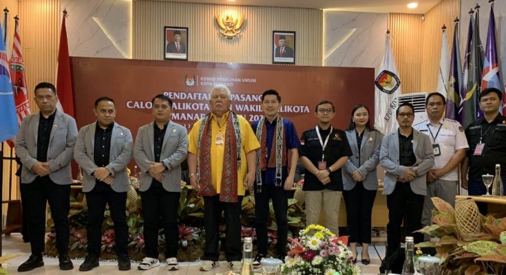 MANADO, identitasnews.id- Komisi Pemilihan Umum (KPU) Kota Manado Sekitar pukul 15:10 WITA terima pasangan calon Wali Kota dan Wakil Wali Kota Manado, Jimmy Rimba Rogi dan Kristo Ivan Lumentut (IMBA-IVAN), secara resmi mendaftar di Kantor KPU, Kamis (29/8/2024) sore.