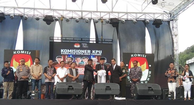 SANGIHE.Identitasnews.id – Komisi Pemilihan Umum (KPU) Kabupaten Kepulauan Sangihe menggelar launching tahapan Pemilihan Kepala Daerah (Pilkada) serentak tahun 2024 untuk Pemilihan Bupati dan Wakil Bupati Kabupaten Kepulauan Sangihe yang dipusatkan di Jalan Boulevard Pelabuhan Tua Tahuna, Sabtu (18/05/2024).
