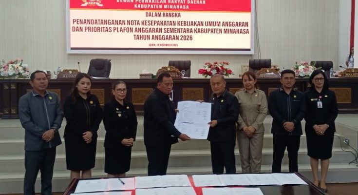 TONDANO, identitasnews.id – Dewan Perwakilan Rakyat Daerah (DPRD) dan Pemerintah Kabupaten (Pemkab) Minahasa, sepakati Kebijakan Umum Anggaran dan Prioritas Plafon Anggaran Sementara (KUA-PPAS) Tahun Anggaran (TA) 2026.