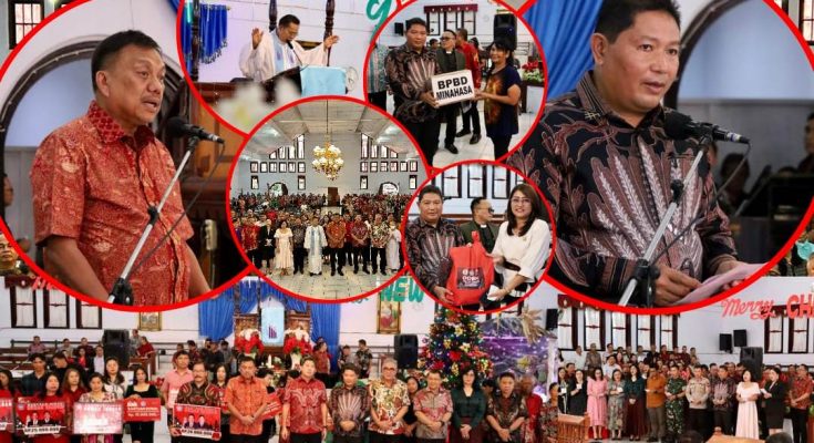 ” Pemkab Minahasa menyambut dengan penuh sukacita atas kehadiran Pak Gubernur , Pak Wakil Gubernur serta Pak Sekprov bersama rombongan dalam ibadah safarai natal Pemprov di kabupaten Minahasa ,” tutur Bupati.