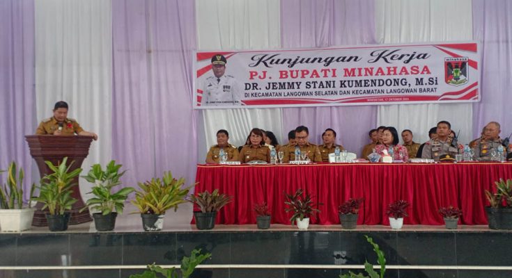 LANGOWAN, identitasnews.id – Pj Bupati Minahasa, Dr. Jemmy Stani Kumendong MSi bersama Ketua TP-PKK, Ny. Djeneke Kumendong – Onibala SH, MSA, melakukan kunjungan kerja di Kecamatan Langowan Barat dan Kecamatan Langowan Selatan Selasa, (17/10/2023).